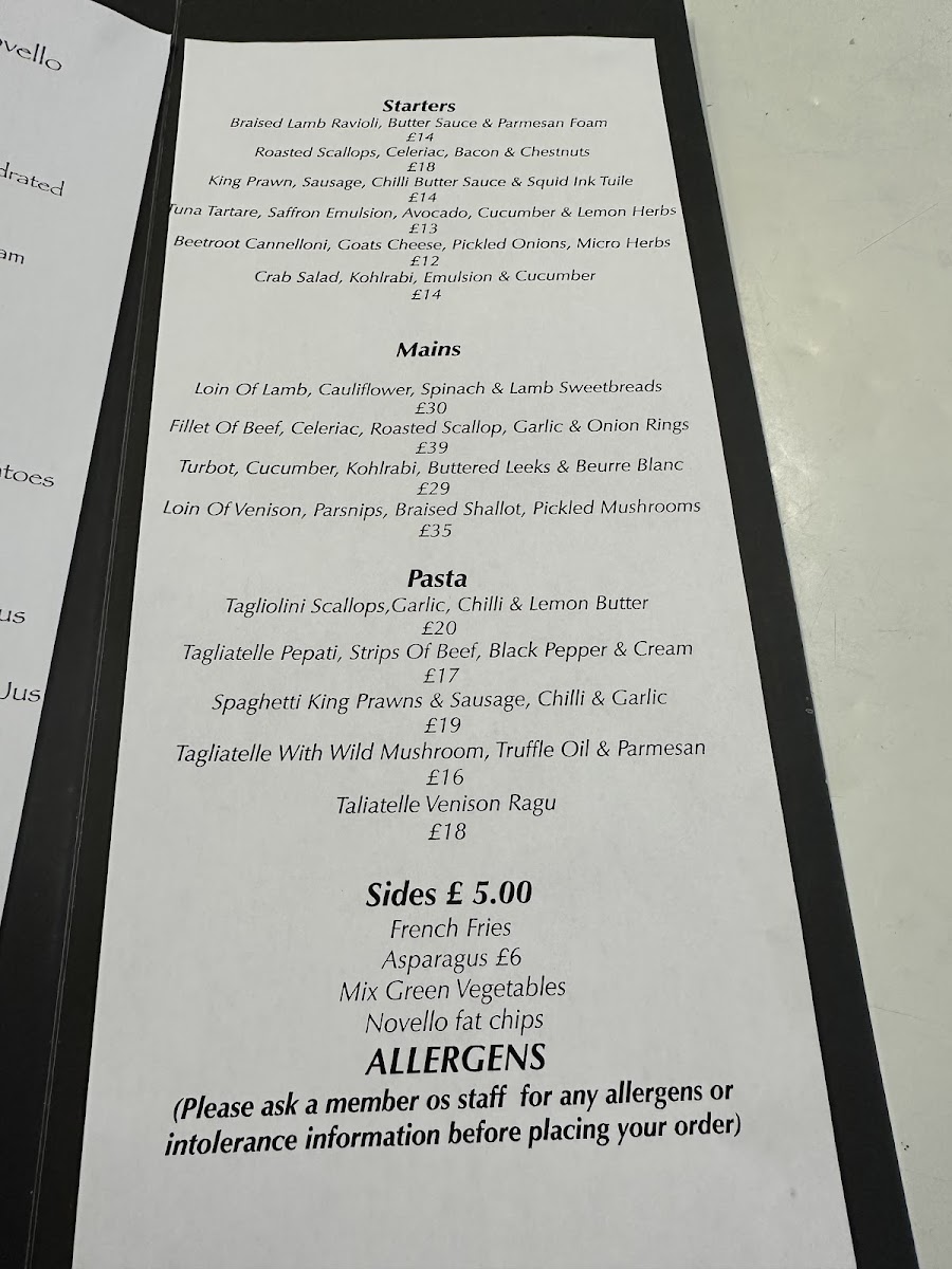 From a reviewer’s perspective, the pasta section of the menu at Novello Lytham St Annes, located at 9 Clifton St, Lytham Saint Annes FY8 5EP, United Kingdom, reflects a clear focus on quality, balance, and classic Italian inspiration. Rather than overwhelming diners with an extensive list, the restaurant highlights a carefully chosen selection of pasta dishes that showcase both technique and flavor. Tagliolini stands out for its fine texture and refined simplicity, making it an ideal choice for those who appreciate delicate pasta that allows the sauce to shine. Tagliatelle Pepati offers a bolder character, with its broader ribbons pairing well with richer, pepper-forward notes, delivering a comforting yet confident taste. Meanwhile, Spaghetti King Prawns brings a more indulgent feel to the menu, combining well-cooked spaghetti with succulent king prawns for a dish that feels both hearty and elegant. Overall, the pasta offerings at Novello suggest a menu designed with intention-each dish feels distinct, thoughtfully prepared, and suited to diners seeking a satisfying Italian-style experience.